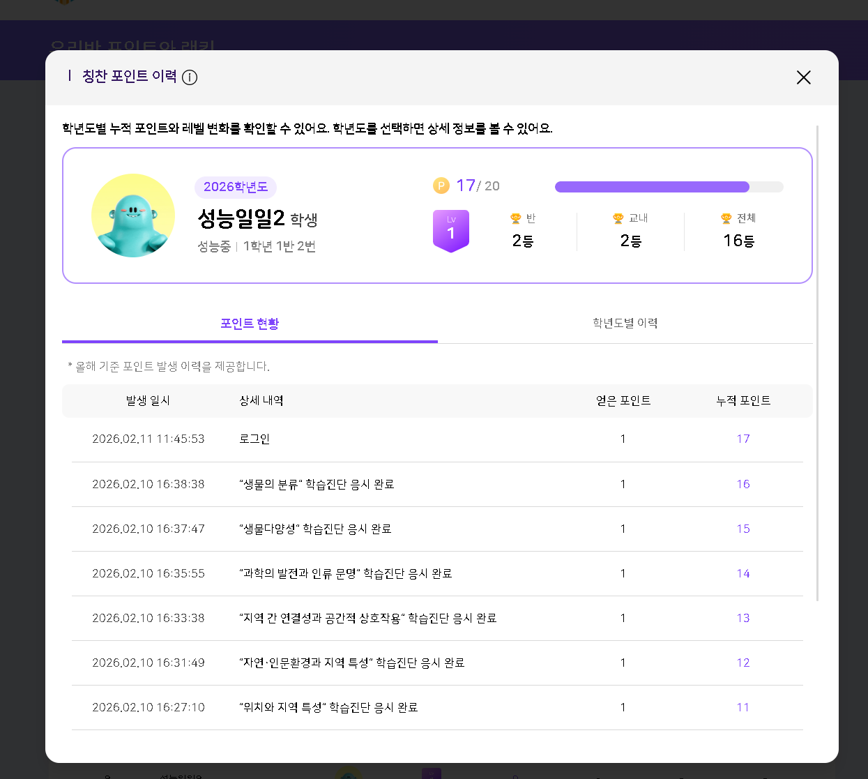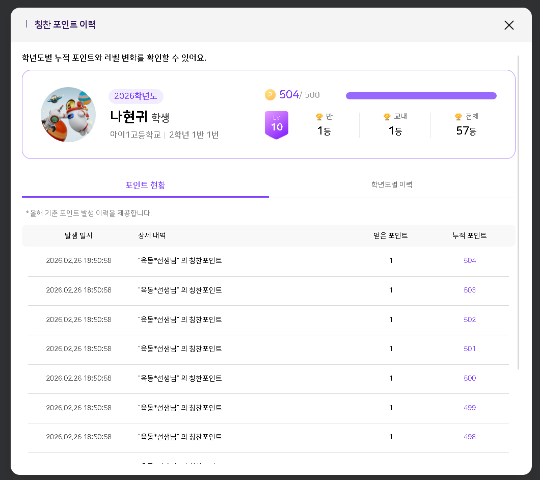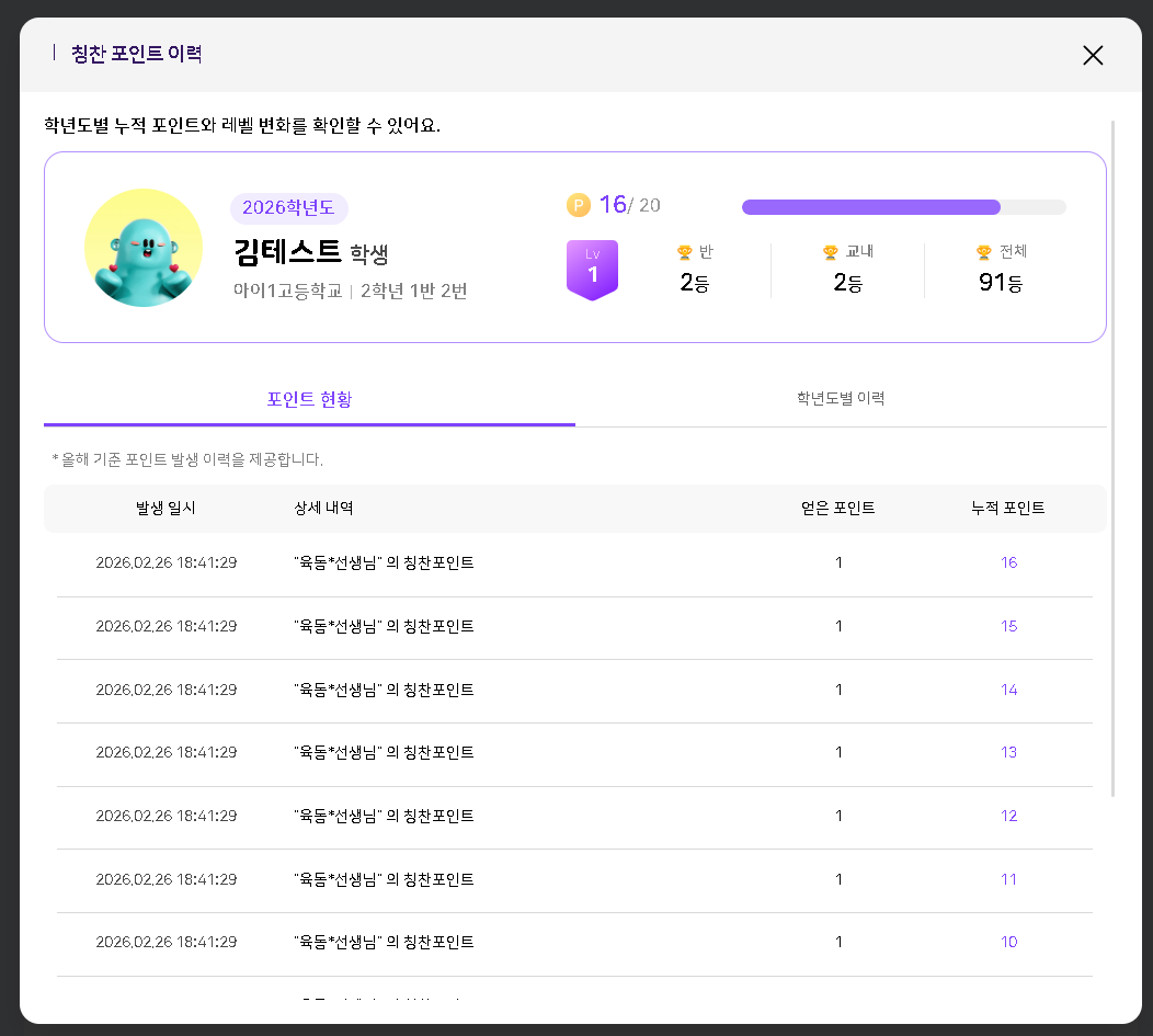 | Steps To Reproduce | 1. 칭찬 포인트 이력 팝업의 프로그레스바 확인 (교사 / 학생) | ||||