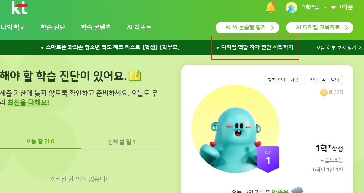 | Steps To Reproduce | 1. 학생 로그인 2. 띠배너에서 디지털 역량 자가 진단 시작하기 버튼 클릭 | ||||