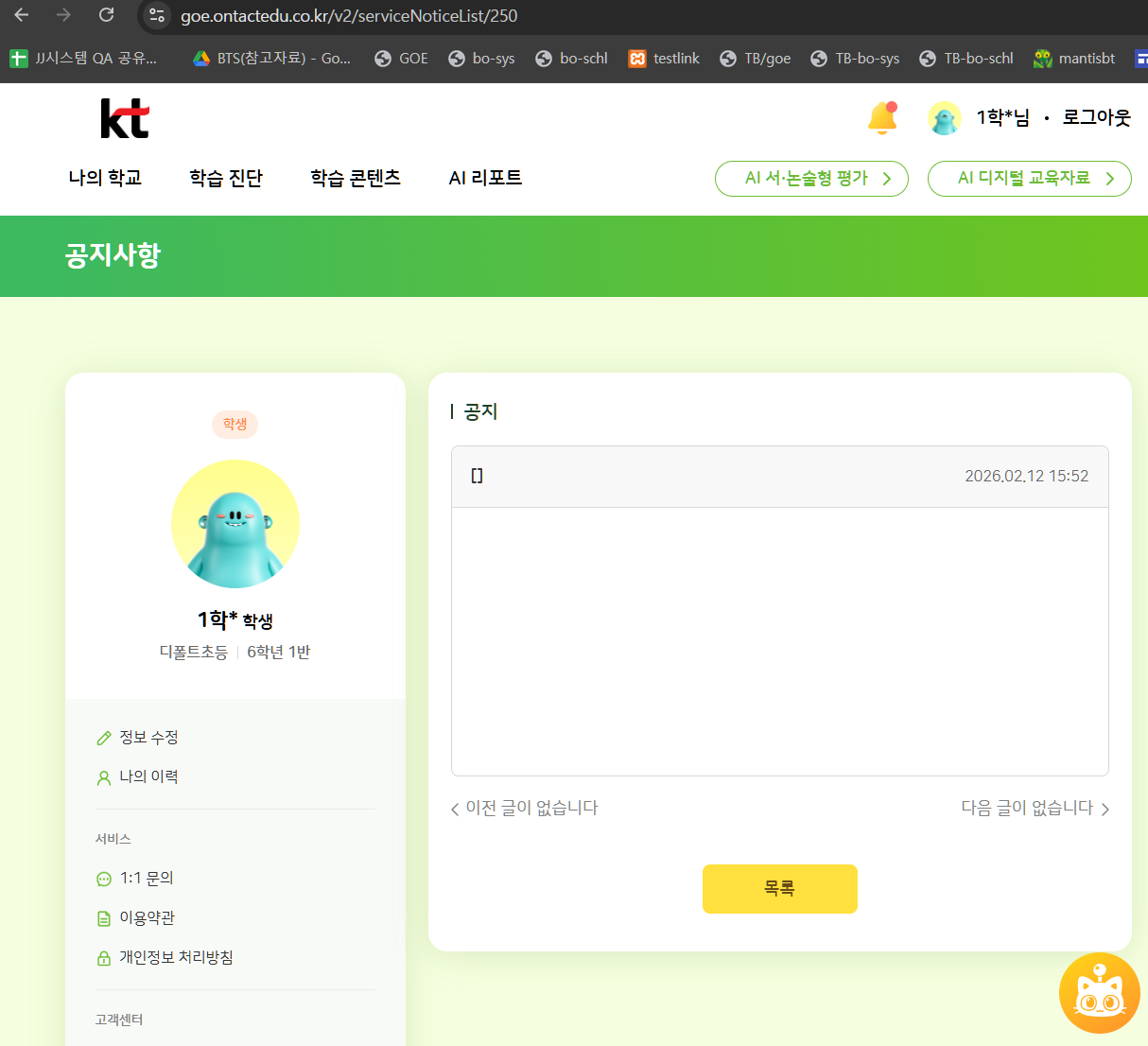 | Summary | 0002028: [디폴트][FO] 학생 띠배너 - 디지털 역량 자가 진단 시작하기 클릭 시 빈 공지사항으로 이동하는 현상 | ||||