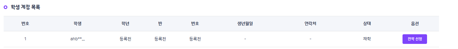 | Steps To Reproduce | 계정관리 > 전학 > 임의학생 > 다른 소속 학교로 전학 신청 | ||||