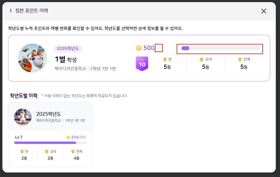 | Steps To Reproduce | 1. 학생 포인트 501이상 부여 후 확인 | ||||
