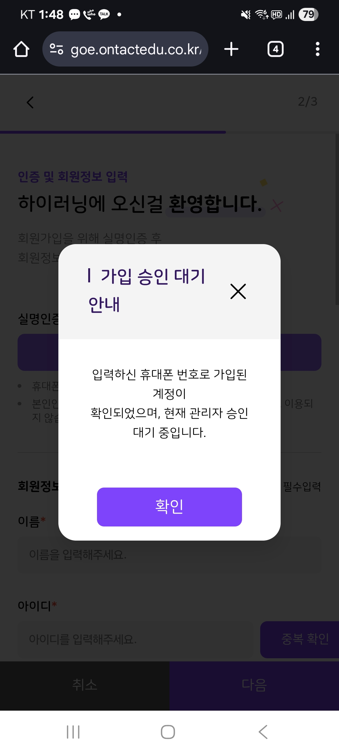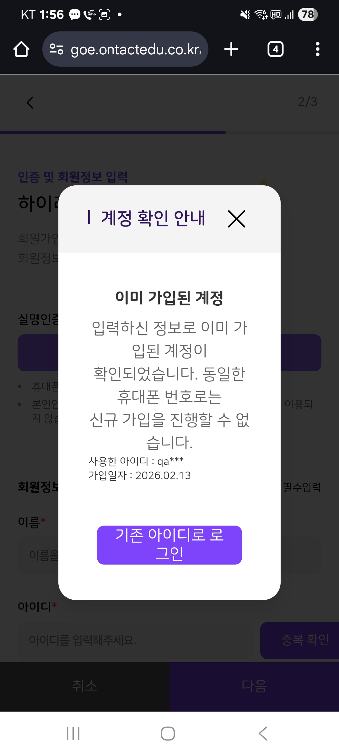 | Steps To Reproduce | 1. 모바일 > 회원가입 2. 가입 대기 상태에서 회원가입 재시도 3. 가입 승인 후 회원가입 재시도 4. 팝업 확인 | ||||
