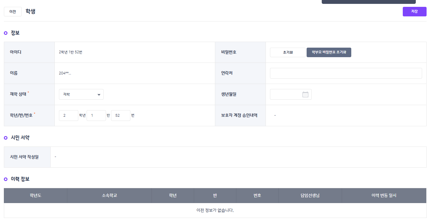 | Steps To Reproduce | 과목을 생성하지 않은 교사 : 학교 BO - 계정관리 - 학생 - 학생 추가시 정상 동작 과목을 생성한적 있는 교사 : 학교 BO - 계정관리 - 학생 - 학생 추가시 "DB 변경 오류" 발생 | ||||
