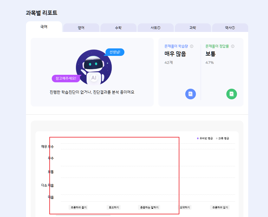 | Steps To Reproduce | 1. 교사 로그인 2. 과목 리포트 진입 3. AI 학습 진단 내역과 비교 | ||||