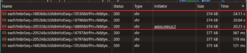 | Description | [학년도][FO] 학생 - 나의 이력 - 이전 학년도 이력 팝업이 데이터 없음일 경우 호출시간 지연 평균 20초 이상 | ||||