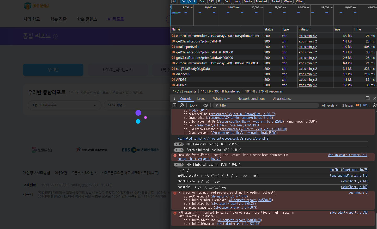 | Description | [종합리포트이력] 특정 학생 이력 확인 시 무한로딩 발생 *API펜딩 및 에러 미노출 | ||||