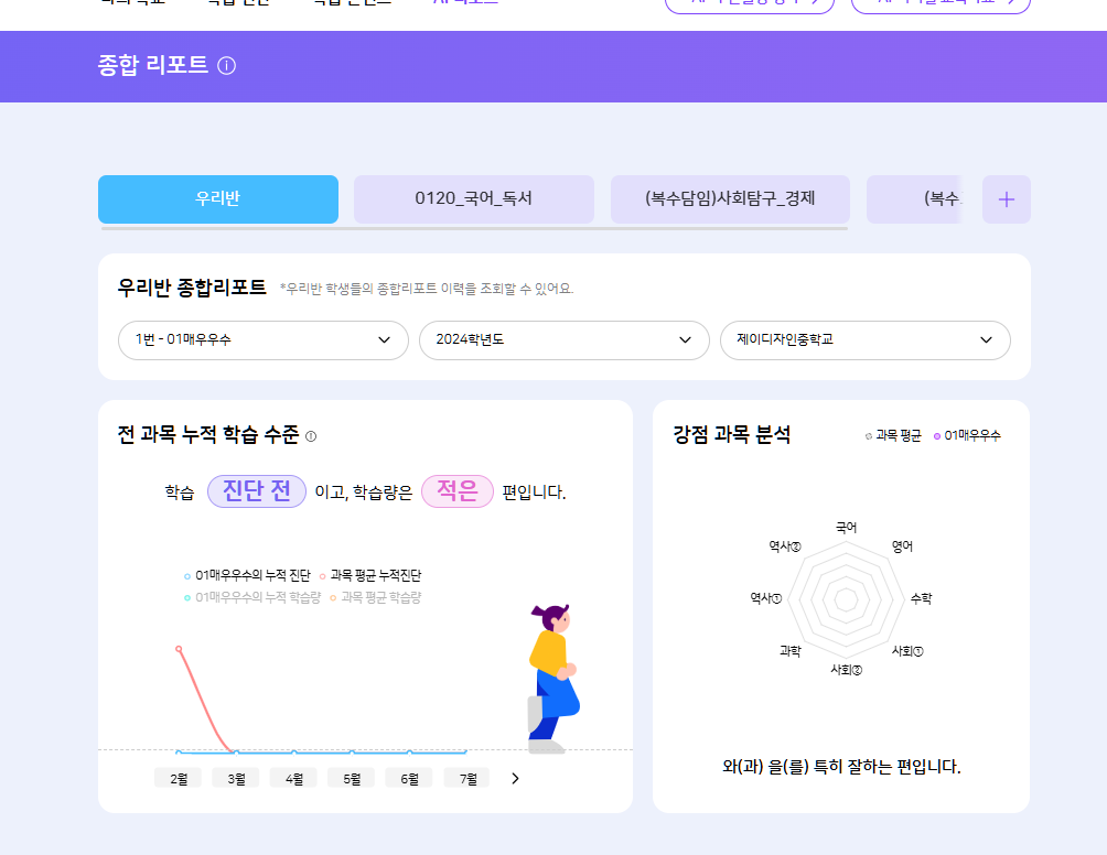TB 이슈 재현되고 있습니다. 확인 부탁드립니다. 재현 스탭 : jw02 로그인 > 종합리포트 진입 > 1별 학생 선택 > 2024학년도 선택 |