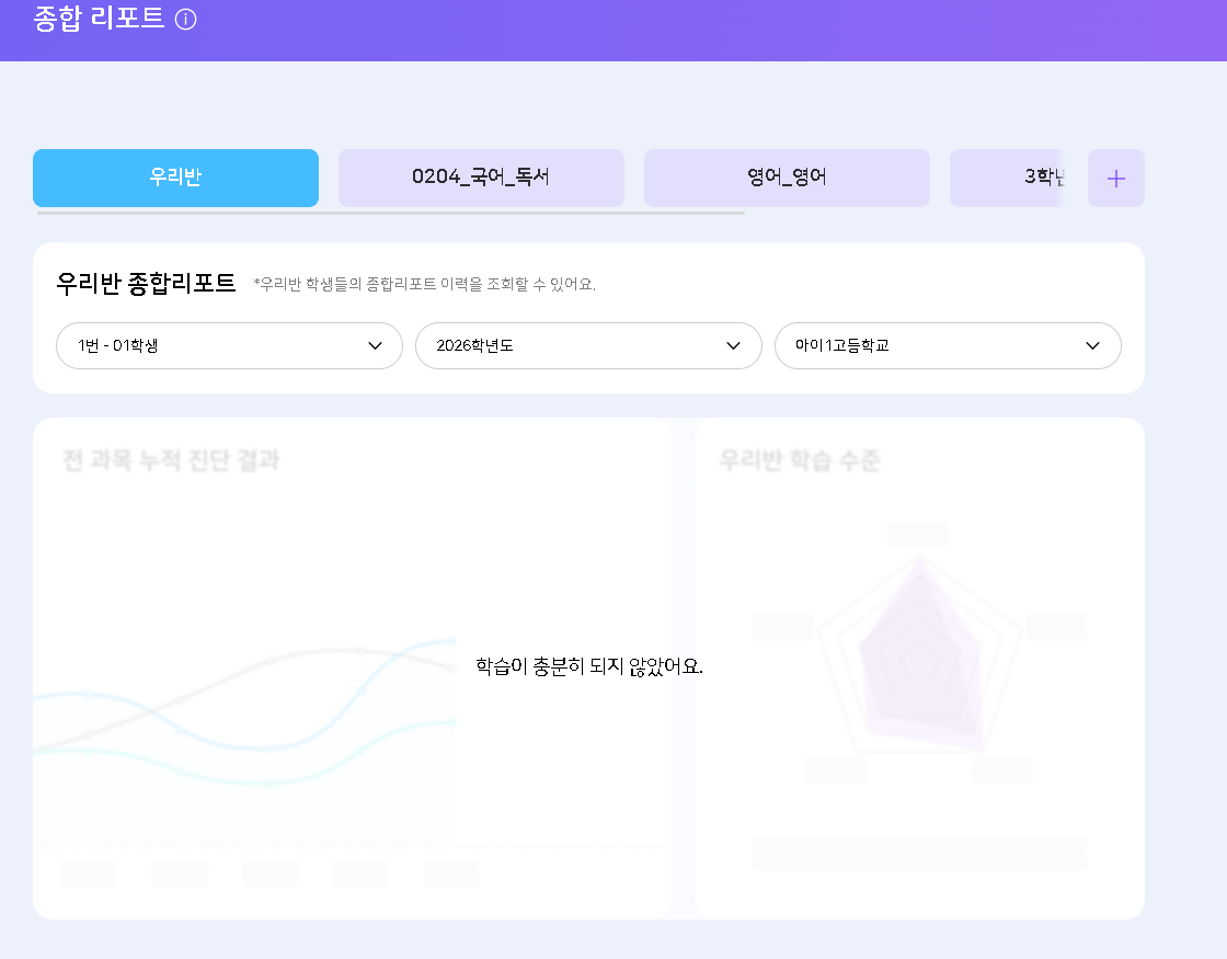 | Description | [종합리포트이력] 데이터 없는 학생 이력 확인 시 화면 오노출 | ||||