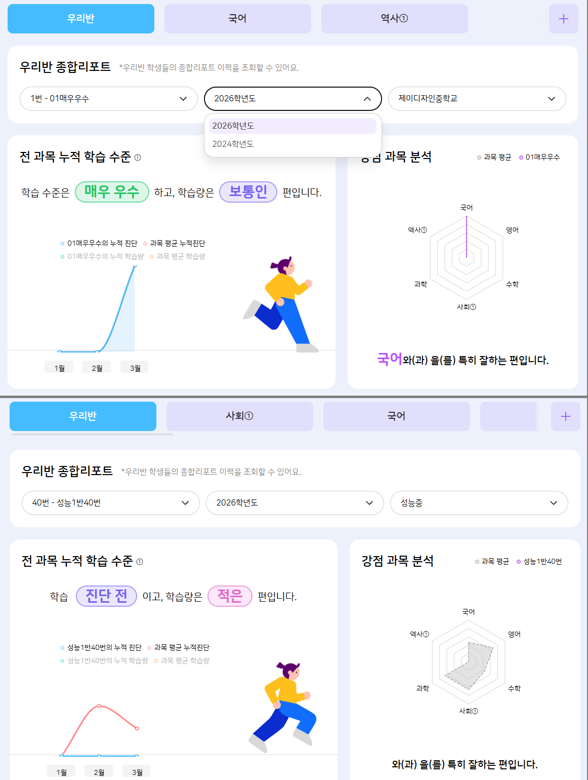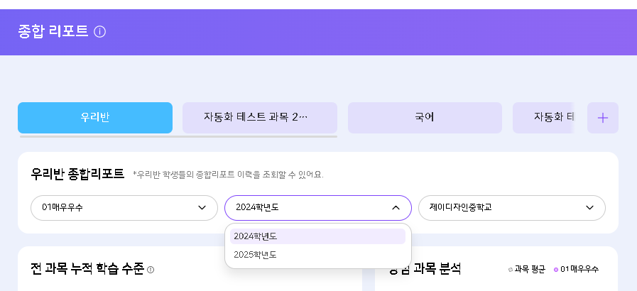 | Steps To Reproduce | AI 리포트 > 종합 리포트 > 학생 선택 > 학년도 선택 | ||||