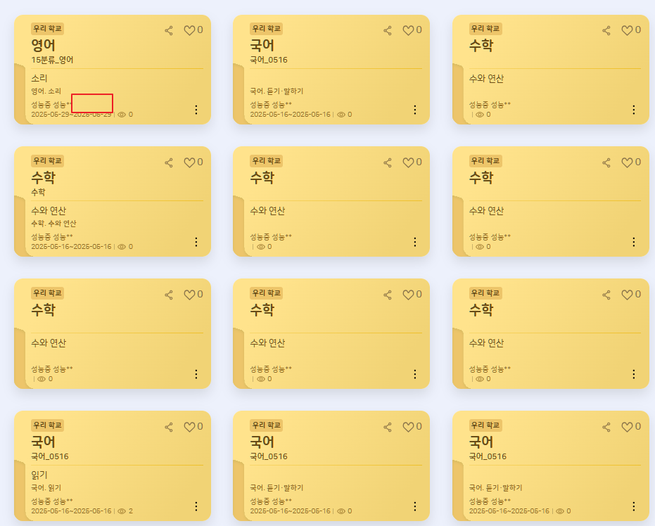 | Steps To Reproduce | 1. 통합검색 진입 2. 수업설계안 유형 클릭 3. 우리 학교 4. 본인 제작 수업 설계안 확인 | ||||