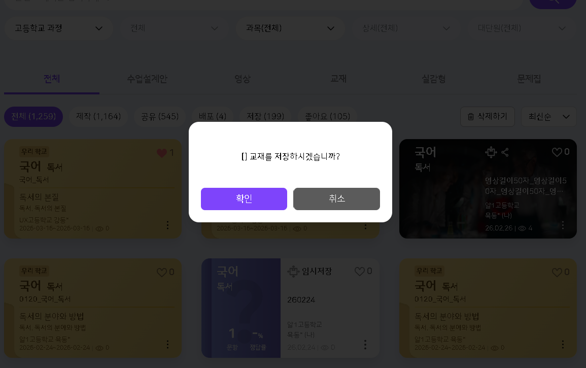 | Description | [FO][수업설계안]내 콘텐츠 - 수업 설계안 - 더보기 저장 error 1. 저장 클릭시 확인 팝업 텍스트 이상 발생 2. 타 교사가 만든 수업 설계안을 "내 콘텐츠"에서 저장 시 저장되지 않는 현상 발생 | ||||