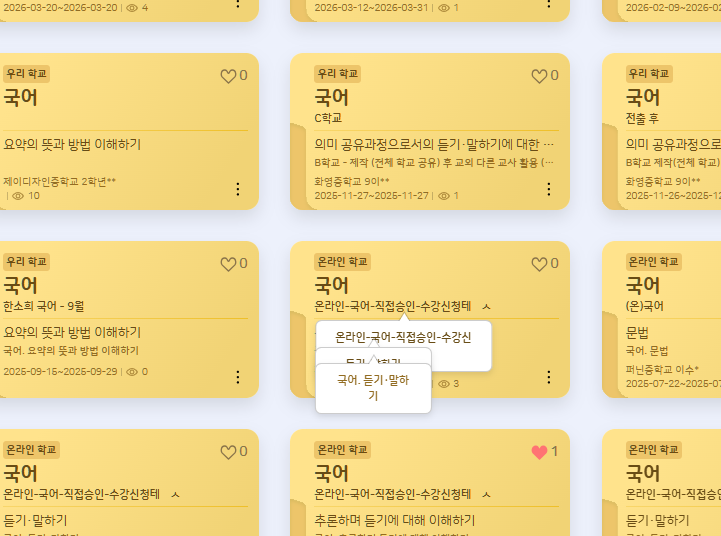 | Description | [수업설계안] 수업설계안 카드의 과목명, 수업명 등 토스트 팝업 클릭 및 다중 활성화 *페이지네이션 시 유지 | ||||