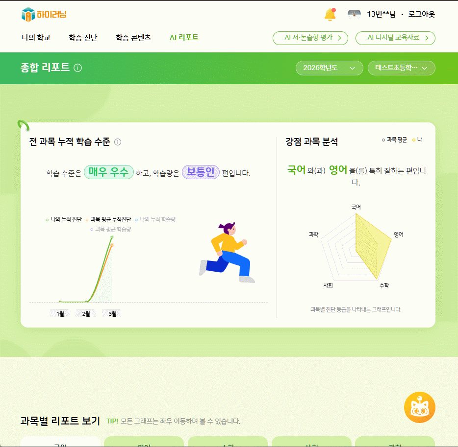 | Steps To Reproduce | 1. 학생 로그인 (테스트초등학교02 4-1-1) 2. 종합리포트 진입 3. 학년도 변경 (24, 25) 4. 과목별 리포트에서 다른 과목 클릭 | ||||