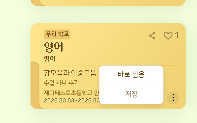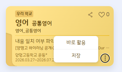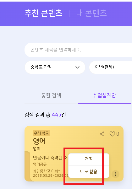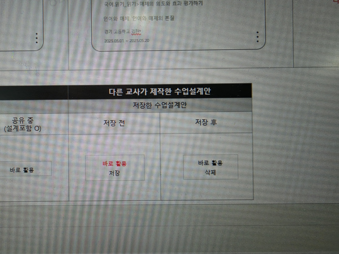 | Description | [FO][수업설계안]추천 콘텐츠 - 더보기 버튼 클릭 시 '바로 활용' 버튼 위치 수정 필요 저장 전 : 바로 활용, 저장 순서로 노출 되어야함. 저장 후 : 바로 활용, 삭제 순서로 노출 되어야함. | ||||