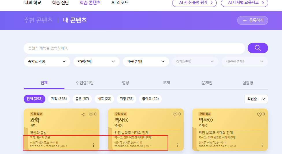 | Description | [수업설계안] 내콘텐츠 > 수업설계안 조회 시 조회수가 적용되지 않는 현상 * 추천 콘텐츠 : 정상 카운트 확인 * 내 콘텐츠 : 카운트 동작하지 않음 | ||||