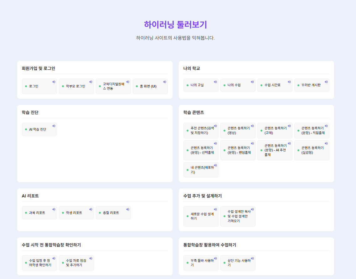 안녕하세요, UXstory 강동휘 입니다. 하이러닝 둘러보기 tutorial폴더내에 tutorial-index.css, tutorial.css, tutorial.js 파일 수정본으로 교체 부탁드립니다. 감사합니다. |
