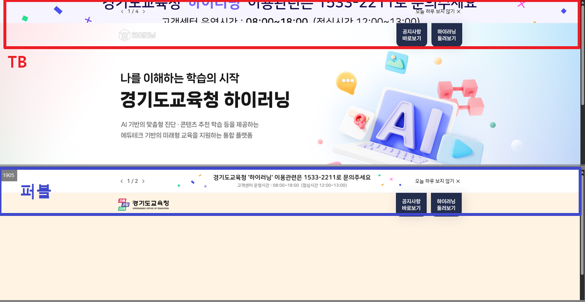 | Description | 상단 배너, 하이러닝 로고 노출이 퍼블과 상이한 현상입니다. | ||||