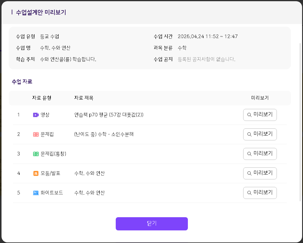| Description | [수업설계안 미리보기]문제집(통창) 자료 제목 노출되지 않는 현상 | ||||