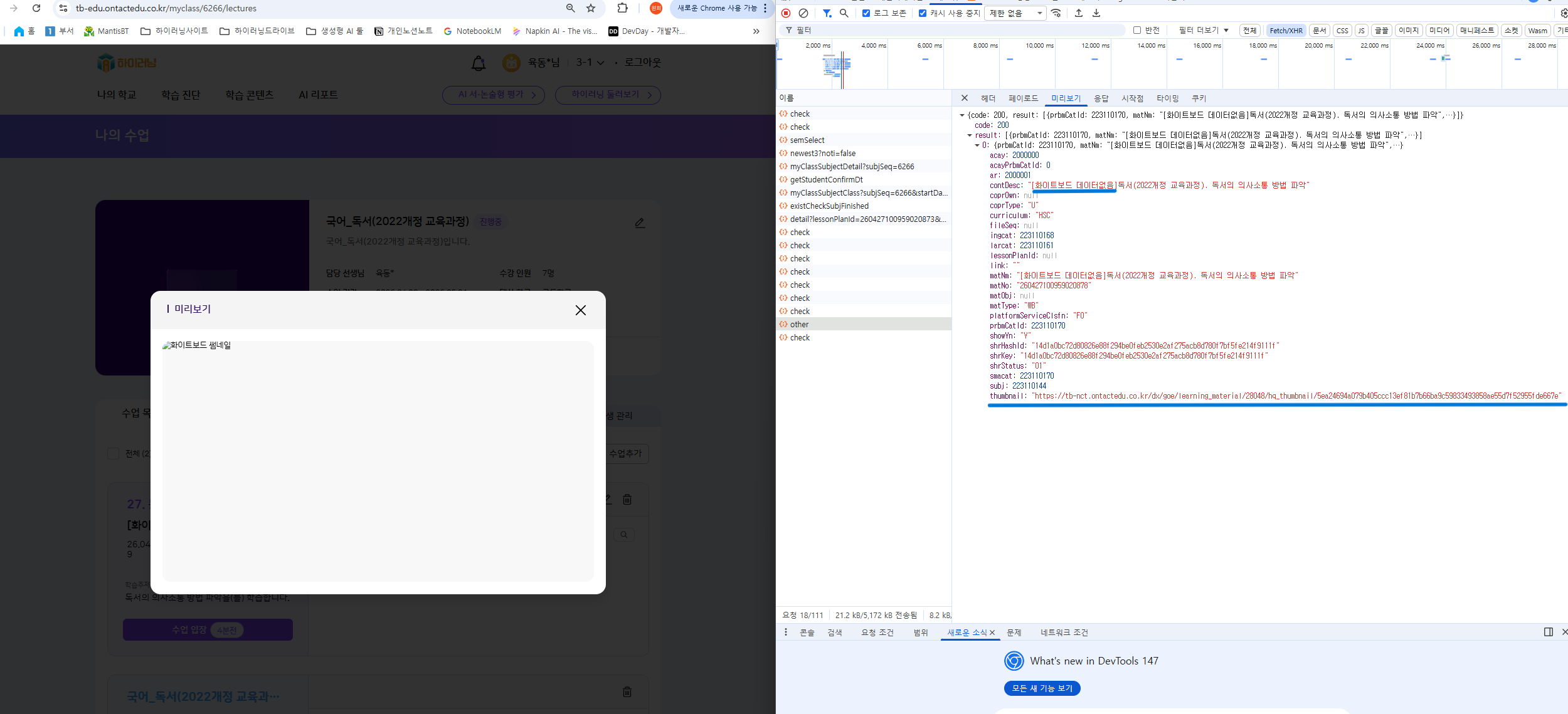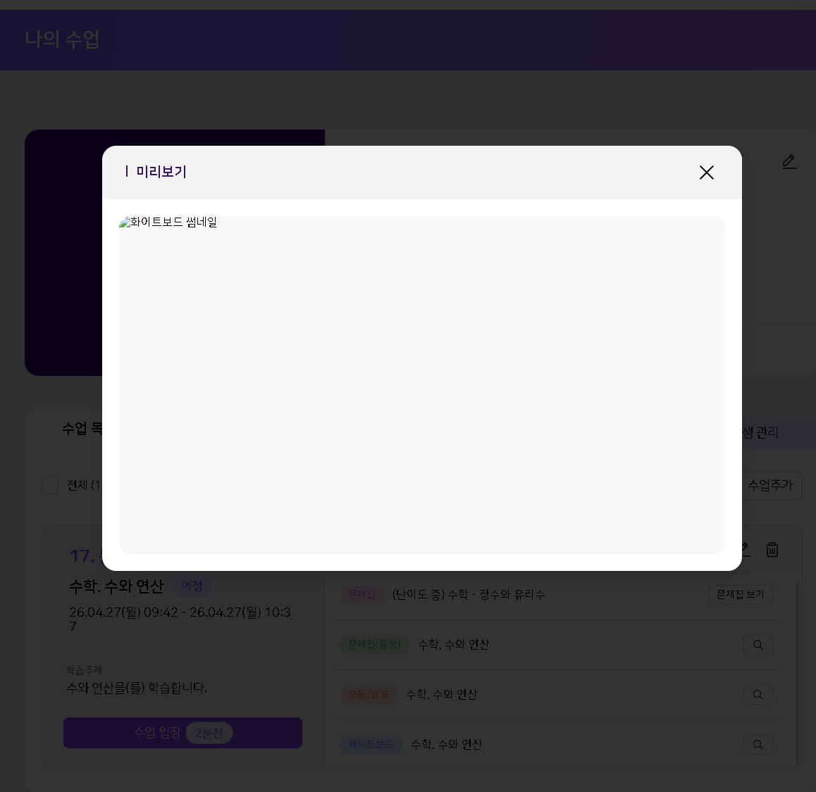| Description | [통창공유고도화]나의 수업 - 수업 카드 : 데이터 없는 화이트보드 미리보기 팝업 오노출 데이터 없을 시 : "해당 수업 자료는 정보가 없어 미리보기를 제공할 수 없습니다." 노출되어야함. | ||||