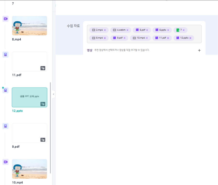 | Steps To Reproduce | 1. 나의학교>나의수업>수업설계하기 2. 수업자료 - 문제집,영상,교재 순서로 추가 후 저장 3. 수업 수정하기>추가된 수업자료 응시 | ||||