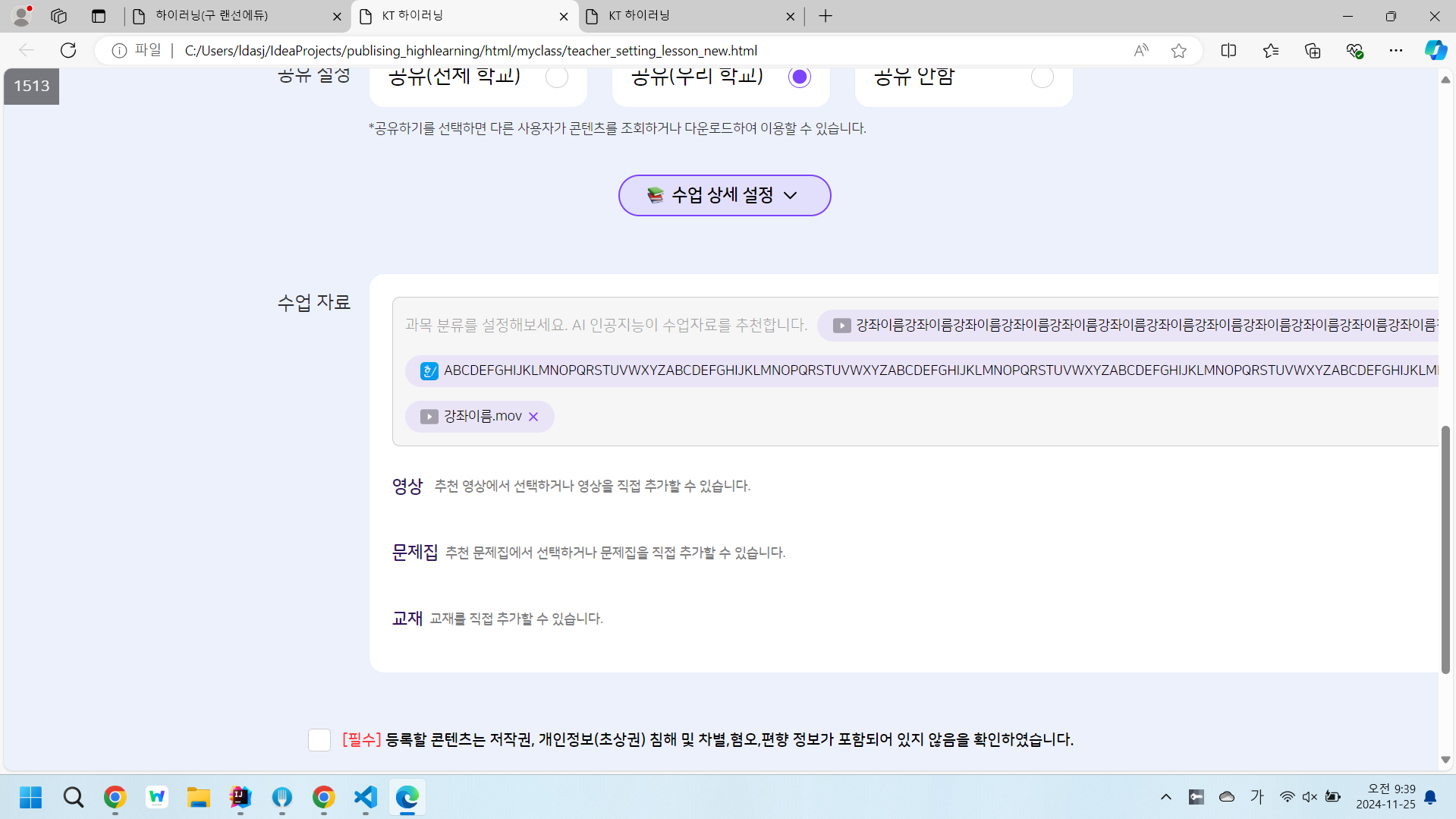 | Description | 수업 설계-콘텐트 등록할때 영문으로 시작하는 파일명의 길이가 긴 영상 직접등록 시 UI 깨지는 현상 발생 | ||||