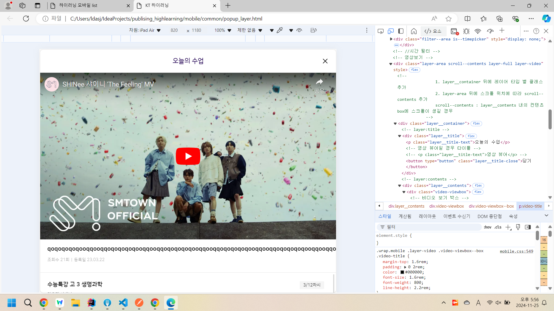 | Steps To Reproduce | 1. 수업 설계 2. 파일명이 긴 영상을 학습 자료로 추가 3. 모바일 접속 > 과목 상세 > [ 영상보기 ] 클릭 | ||||