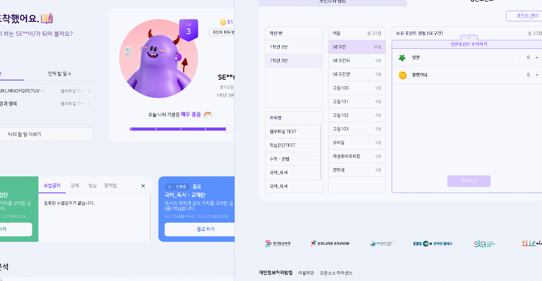 | Steps To Reproduce | 1. 교사가 우리반 포인트와 랭킹>칭찬포인트 2. 다수의 포인트 목록 동시에 포인트 부여 3. 학생 화면 응시 | ||||