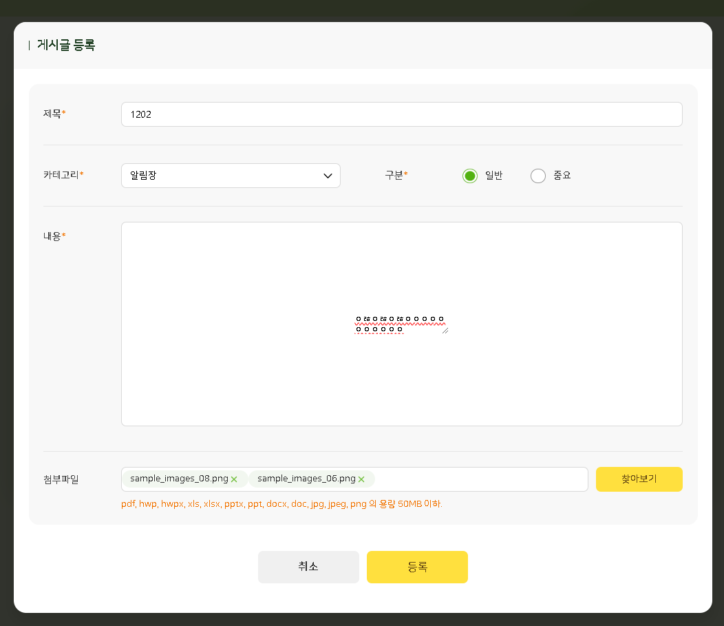 | Steps To Reproduce | 1. 나의 수업>수업 상세>게시판>등록 | ||||