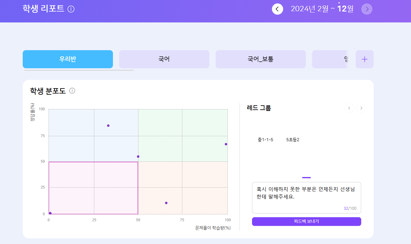 | Steps To Reproduce | 1. 교사 로그인 2. AI 리포트 > 학생 리포트 3. 학생 분포도 > 그룹 확인 | ||||