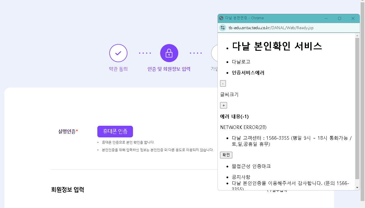 | Description | 회원가입 휴대폰인증시 다날 서비스 연동 에러 | ||||