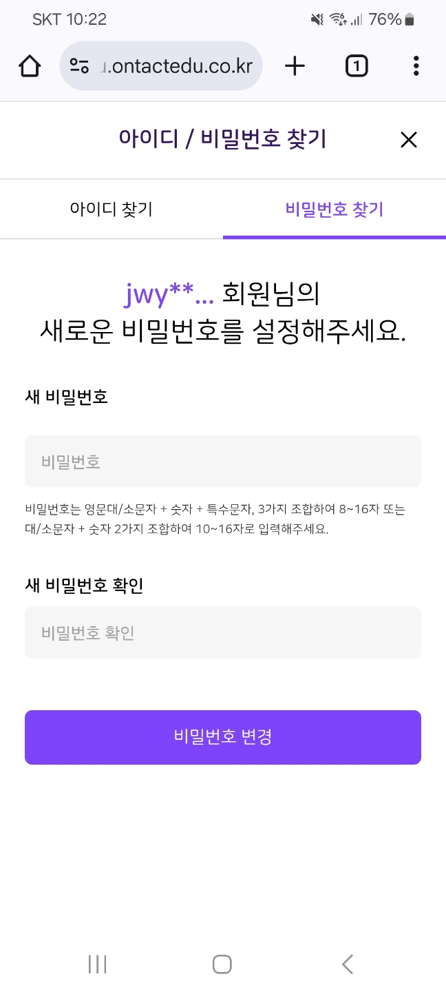 | Description | 모바일로 교사 비밀번호 찾기 시도 시 아이디가 마스킹 처리되어 나오는 현상 | ||||