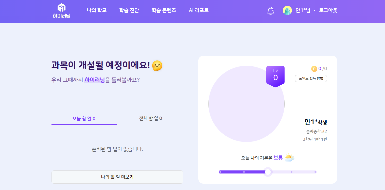 | Summary | 0000348: 학생 계정 생성 후 최초 로그인 시 프로필 사진 영역이 레벨 0 으로 뜨는 현상 | ||||