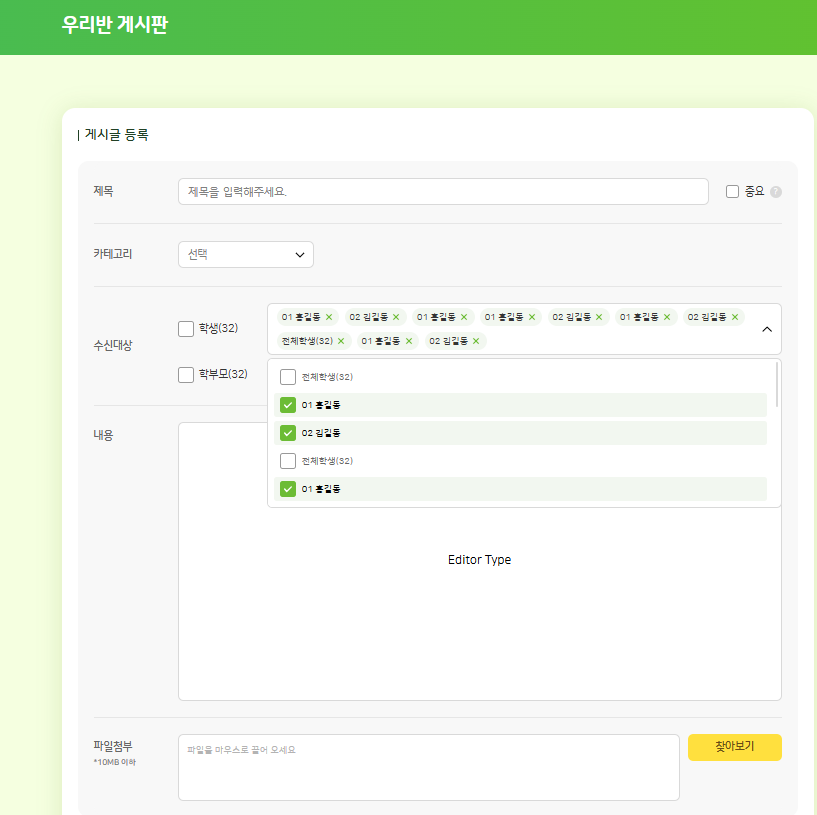 | Description | (초등만)학생 많은 교사 - 우리반 게시판 수신대상 1~2명 해제 시 UI 깨지는 현상 | ||||