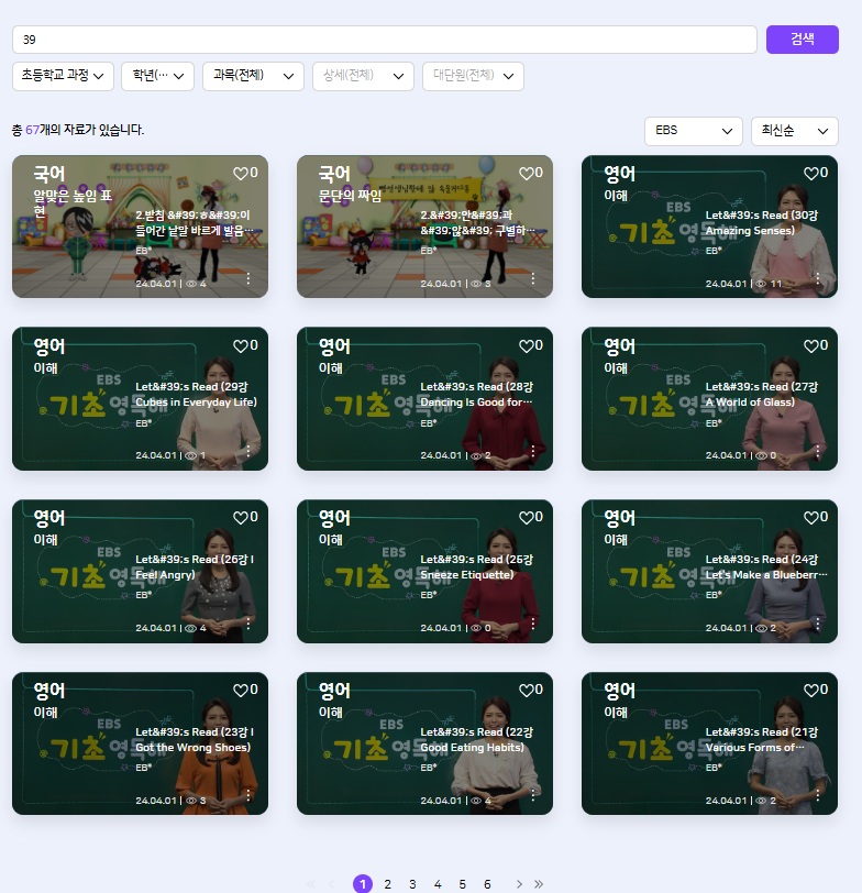 | Steps To Reproduce | 1. 학습 콘텐츠 > 영상 2. 초등학교 과정 3. 39로 검색 | ||||