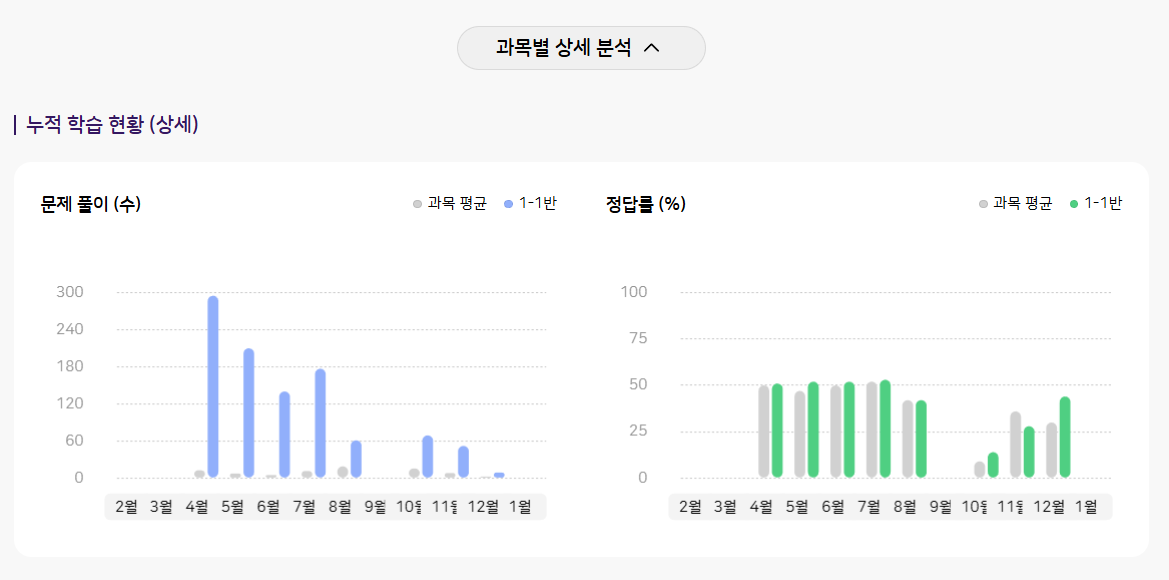 | Description | 교사/학생 : 종합 리포트 > 과목별 리포트 보기 > 과목별 상세 분석에서 글자 깨지는 현상(초,중,고) | ||||