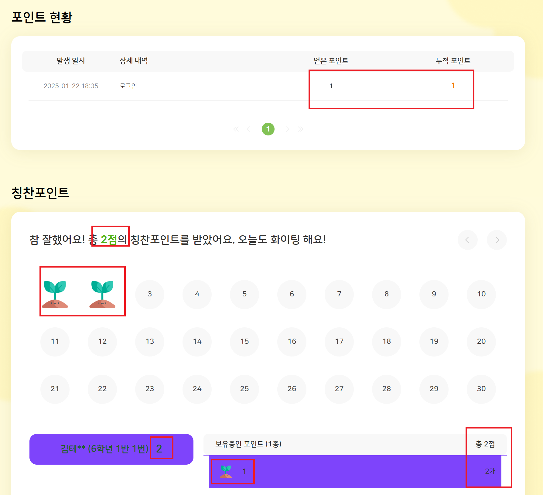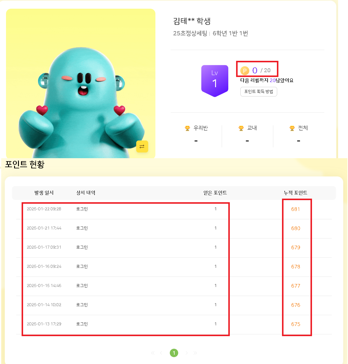 | Steps To Reproduce | 1. 학생 로그인>나의 프로필 레벨 2. 포인트 현황 응시 | ||||