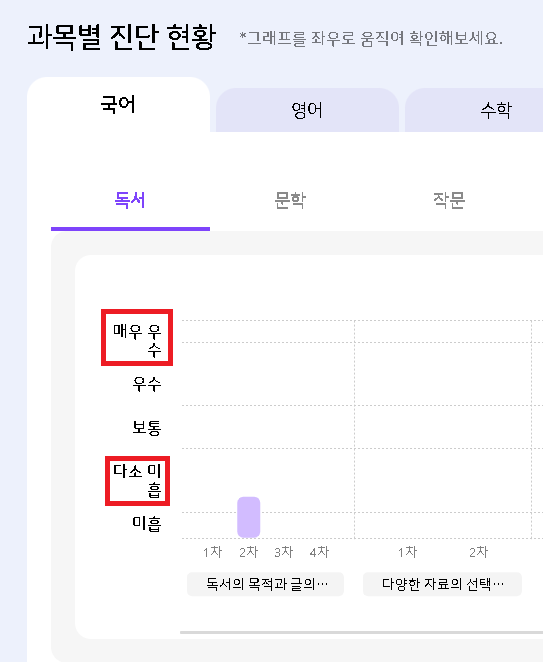 | Description | AI 학습진단 - 과목별 진단 현황 그래프 세로축 값이 줄바꿈 되는 현상 발생 | ||||