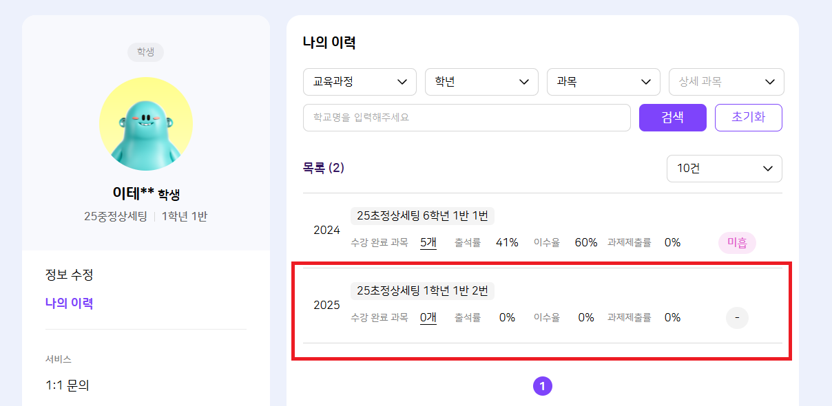| Description | 정상세팅한 초등학교에서 정상세팅한 중학교로 진급한 학생의 '나의 이력'에 관련없는 이력이 노출되는 현상 | ||||