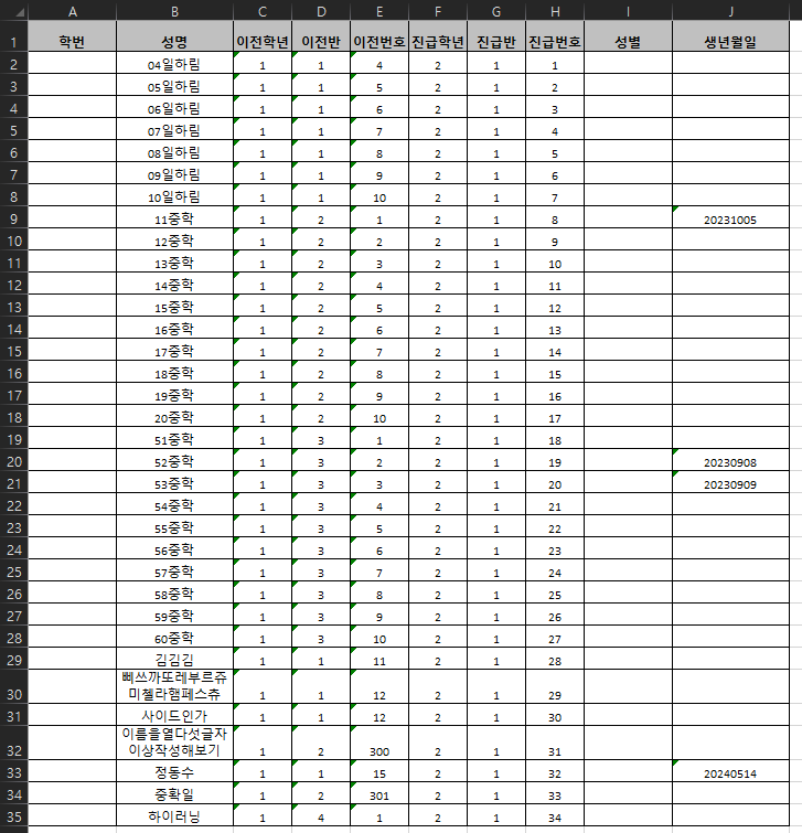 23년도 학생 리스트 및 진학, 전학 이력 확인했습니다. 해당 이슈는 완료 처리하겠습니다. |