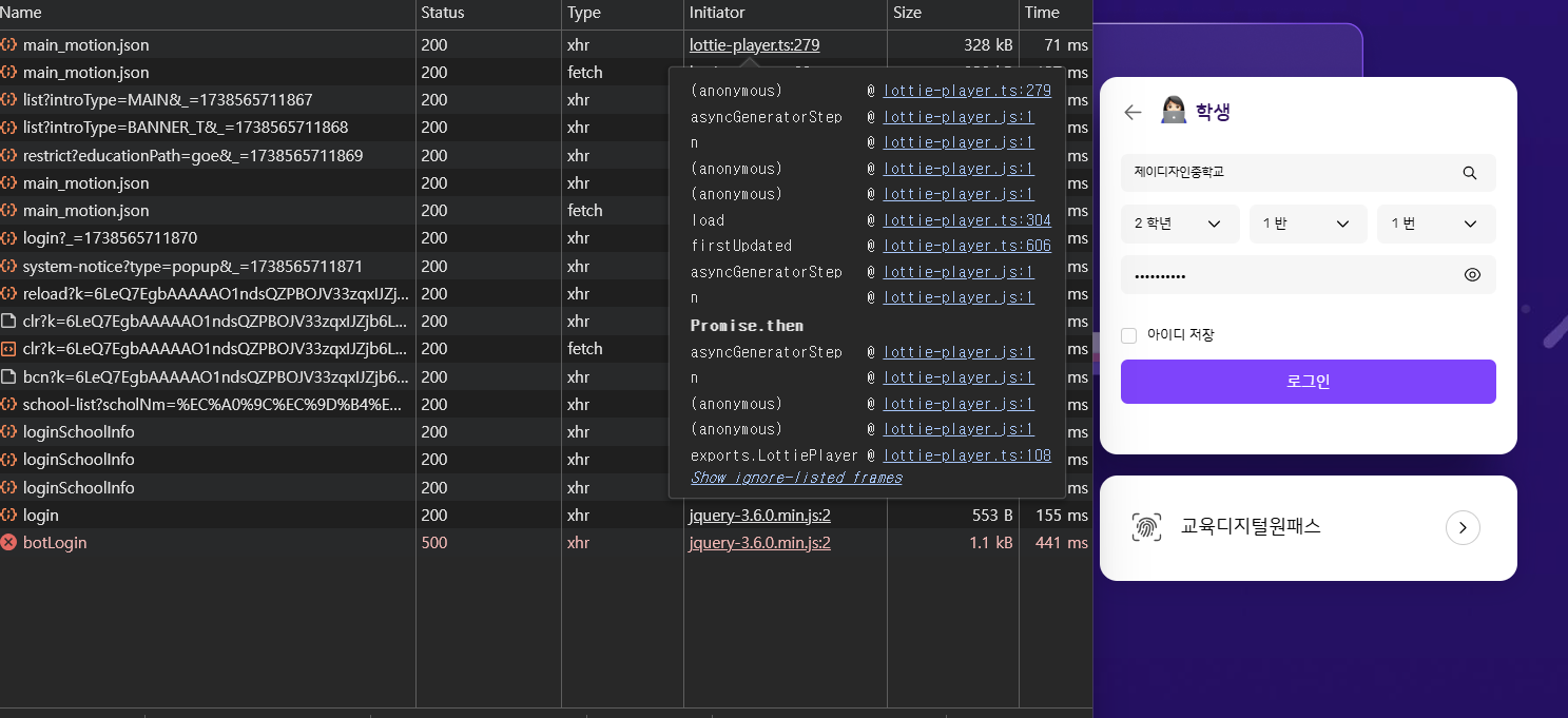 | 2025-02-03 08:23 | 김소원 | Summary | 학년도 전환 후 특정 학생 로그인 시 무반응 => 사진 프로필 학생 학년도 전환 시 로그인 에러 발생 |