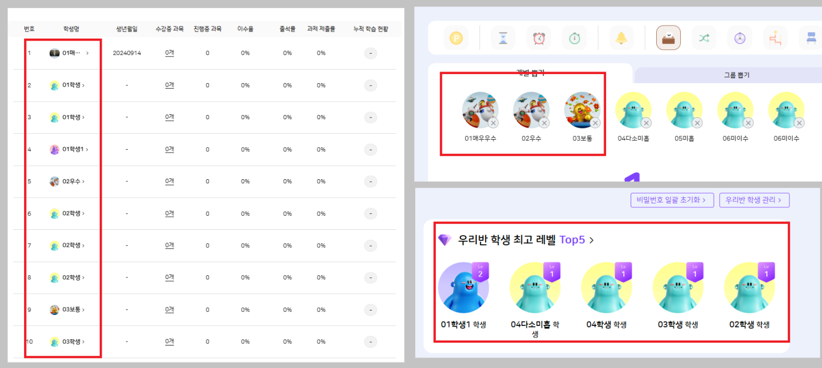 | Steps To Reproduce | 1. 학급경영도구, 나의 교실 > 우리반 학생, 우리반 학생 최고 레벨 확인 | ||||