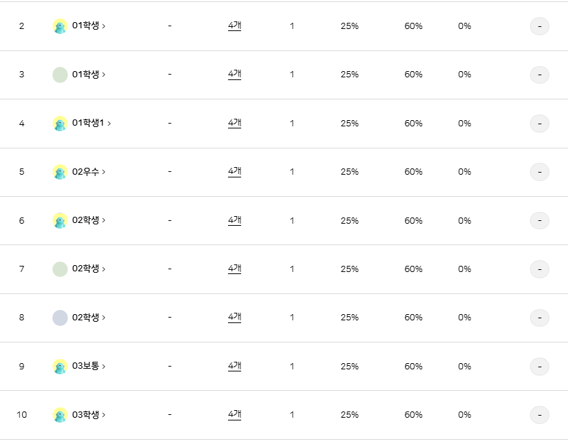 나의 교실 - 우리반 학생에서 프로필이 노출되지 않는 학생들이 있습니다. |