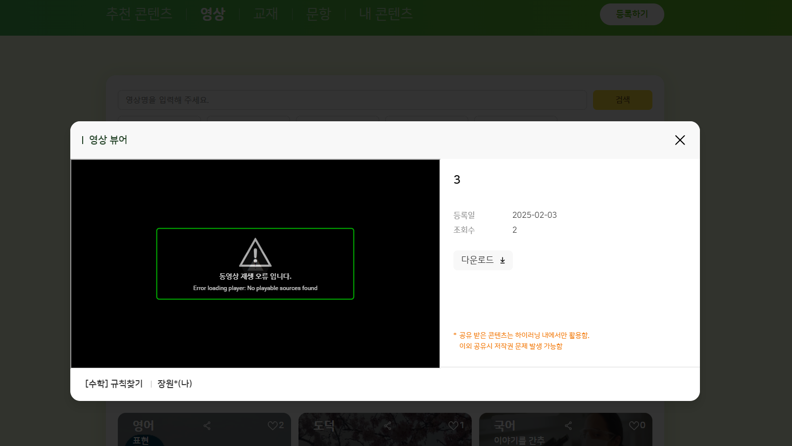 | Description | 학습 콘텐츠 영상 등록은 되지만 재생은 안되는 현상 문구 : 동영상 재생 오류 입니다. | ||||