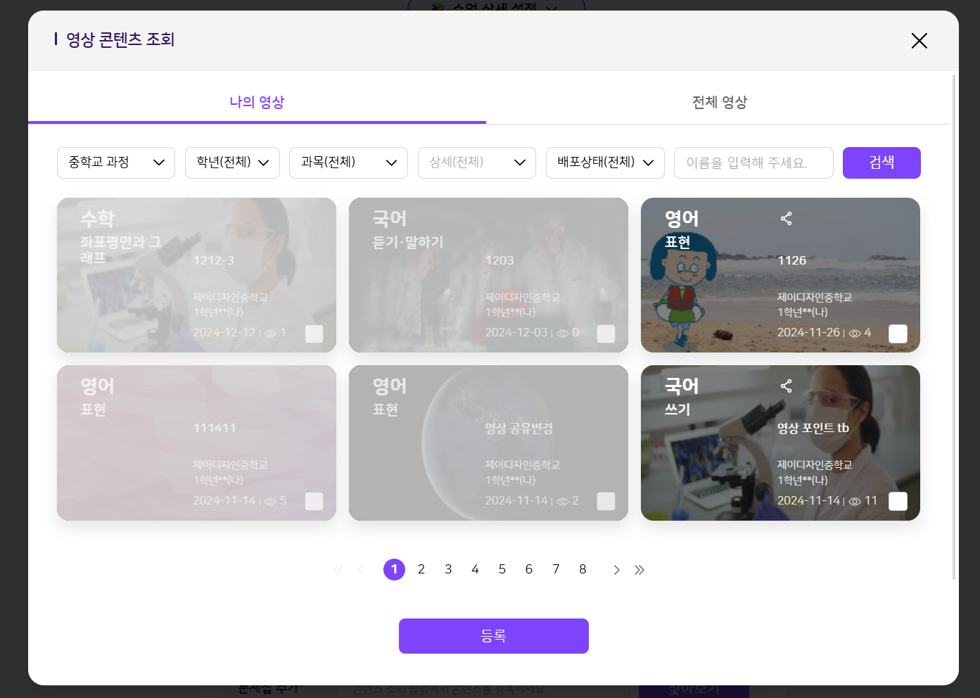 | Description | 수업 설계 > 영상 콘텐츠 조회 시 특정 영상에 딤처리 | ||||