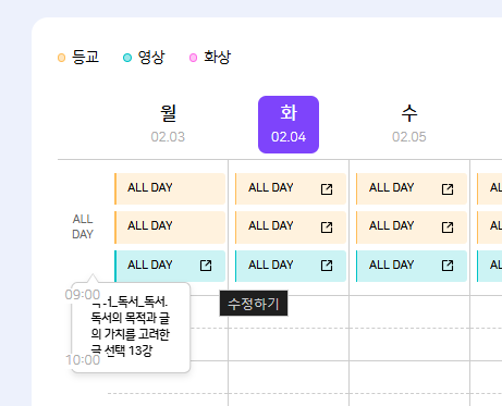 | Description | 수업시간표에서 수업명 툴팁이 좌측 시간보다 아래 레이어에 노출되는 현상 | ||||