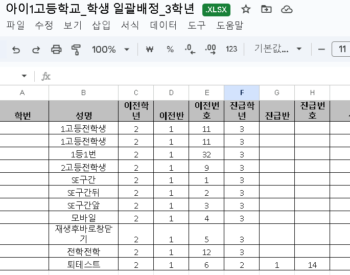 일괄학급배정 시 호출 쿼리 수정 상용에서 동일한 케이스의 진급하지 않은 계정을 찾지 못해 검증이 어렵습니다. 전학 후 다시 원학교로 돌아올 확률이 적어 해당 이슈는 종료처리하겠습니다. |