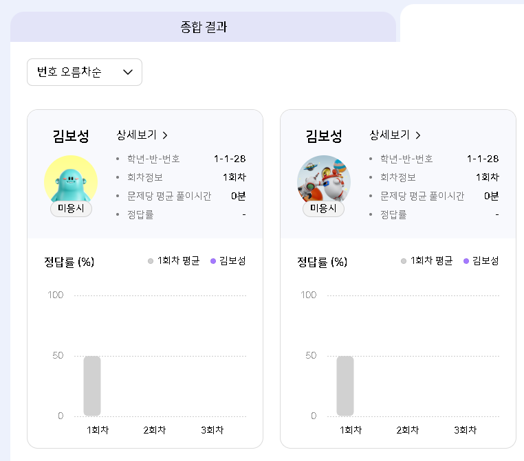 | Description | AI 학습진단>진단 현황 및 결과 페이지에서 동일 학생이 2명씩 보이는 현상 발생 | ||||