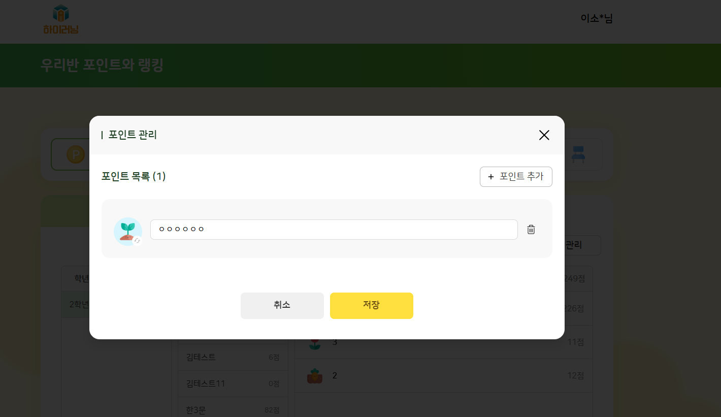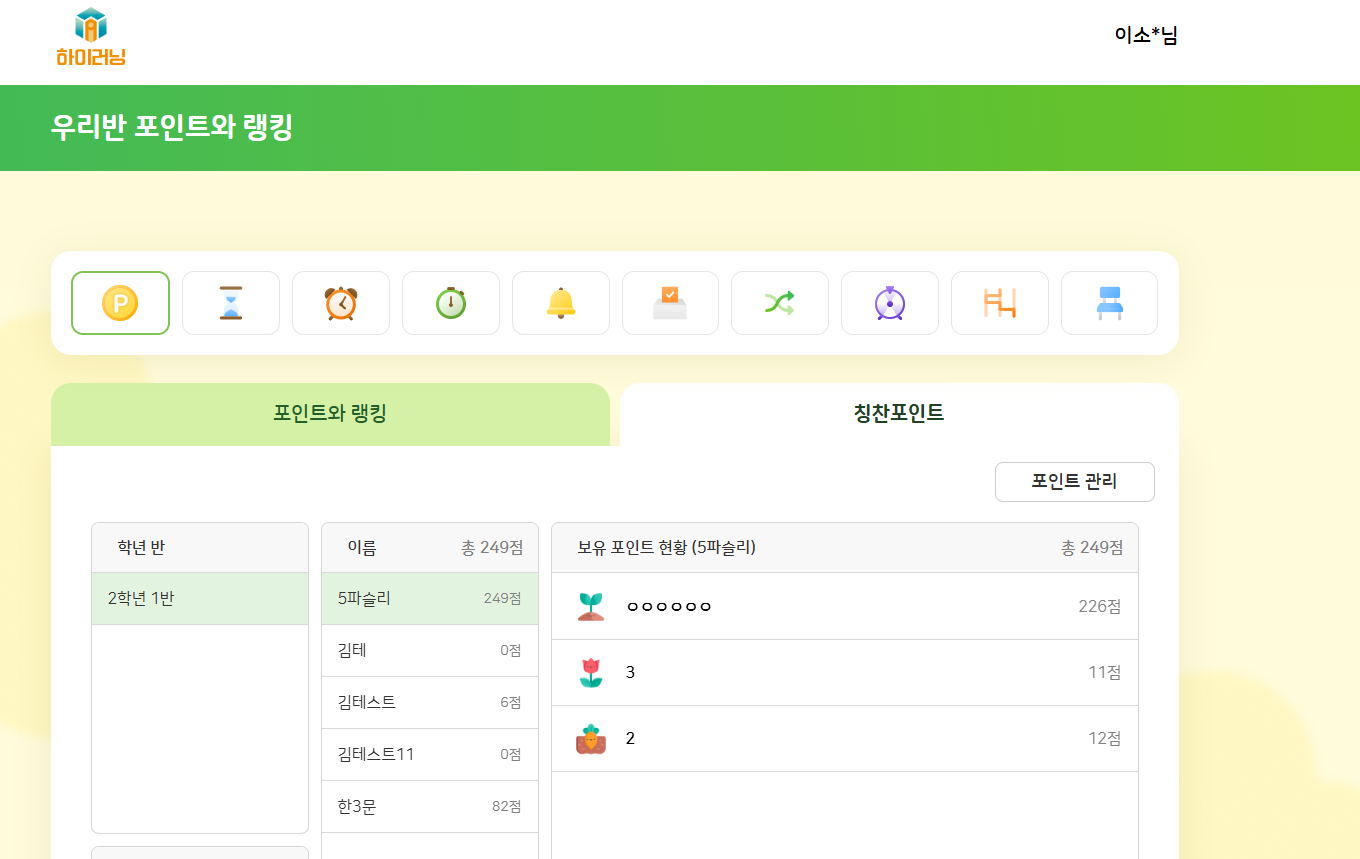 | Steps To Reproduce | 1. 교사 로그인 2. 우리반 포인트와 랭킹 > 칭찬포인트 3. 우리반 포인트와 랭킹 >칭찬포인트 > 포인트 관리 2, 3 번 비교 | ||||