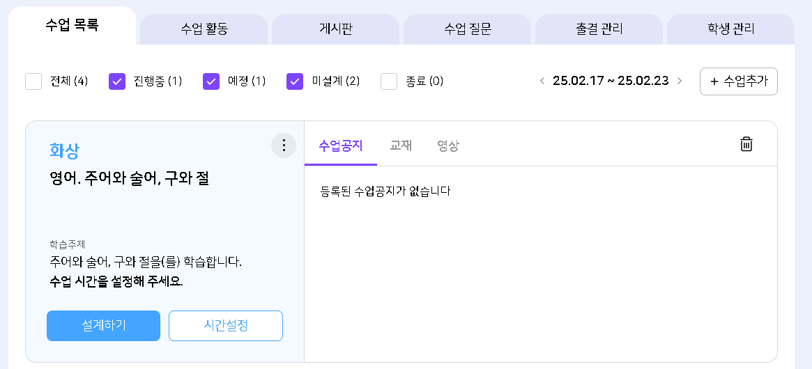 | Description | 시간 설정 완료하지 않은 복사된 화상 수업에 [더보기] 버튼 클릭시 반응 없음 시간 설정 미완료시에는 [더보기] 버튼을 미노출하거나 안내 팝업 노출 필요. | ||||