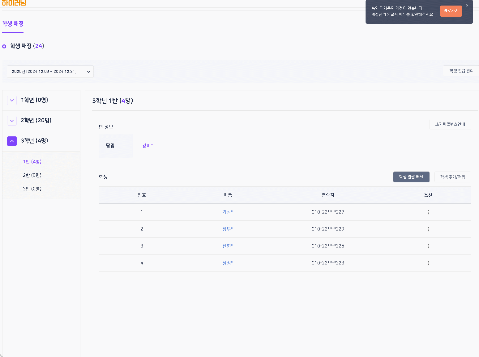 | Steps To Reproduce | 학교BO > 학급관리 > 학생배정 > 3학년1반 > 학생 추가/편집 > 전학* 학생 추가 후 저장 | ||||